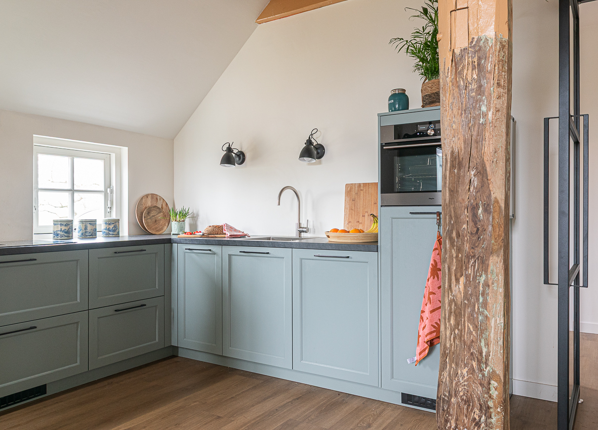 Wij hebben een oude woonboerderij gekocht en deze helemaal gestript. Madelon heeft ons geholpen met het bepalen van de sfeer, de indeling van de keuken en de keuze voor de fronten en het werkblad, de indeling van de badkamer, de vloerkeuze en de kleurkeuze voor de wanden. Alles is nu heel mooi op elkaar afgestemd.